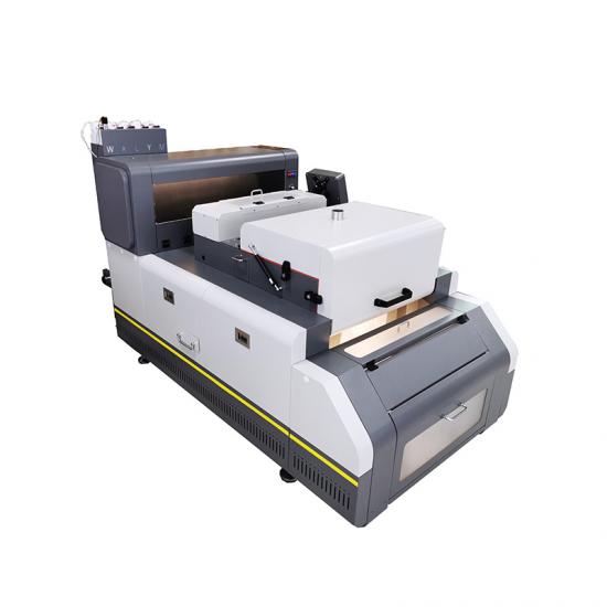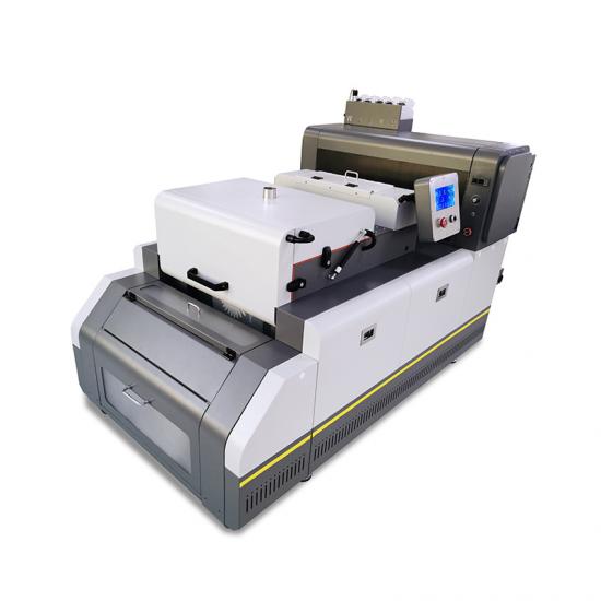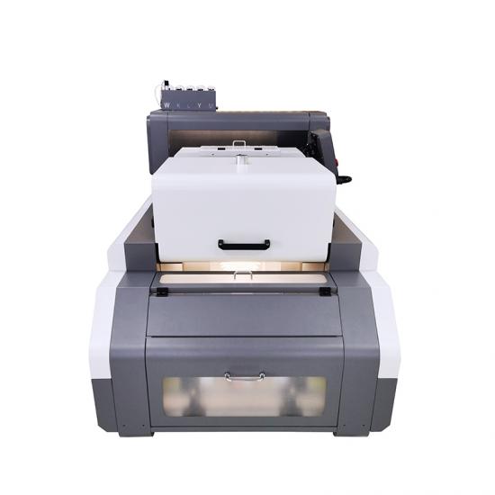 Stampante A3 dtf con shaker powder machine tutto in uno adatto per A3 / A4 direttamente alla stampa su pellicola. Con doppia testina di stampa I3200, alta velocità di 9 metri quadrati.