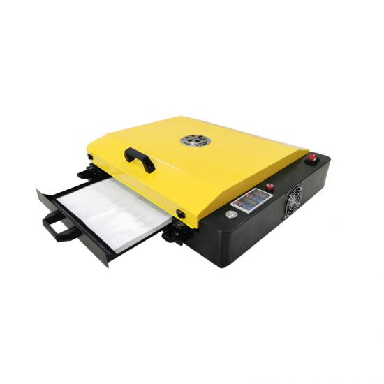 Forno A3 dtf progettato per la stampa A3 dtf. Temporizzazione automatica, cicalino di arrivo e allarme LED. Dimensioni massime: 430 * 318 mm.